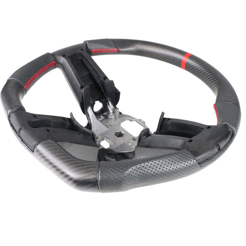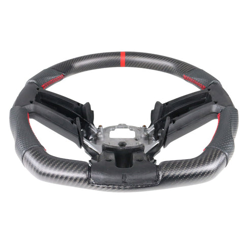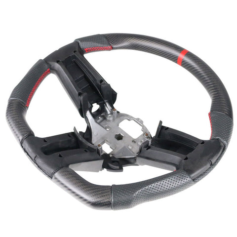 10-14 Ford Mustang Matte CF & Leather Steering Wheel W/Red Stitch&Indicator