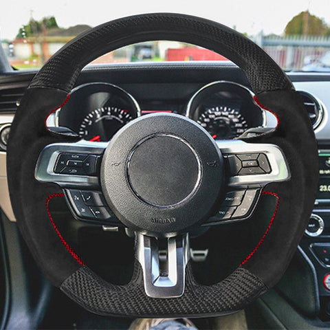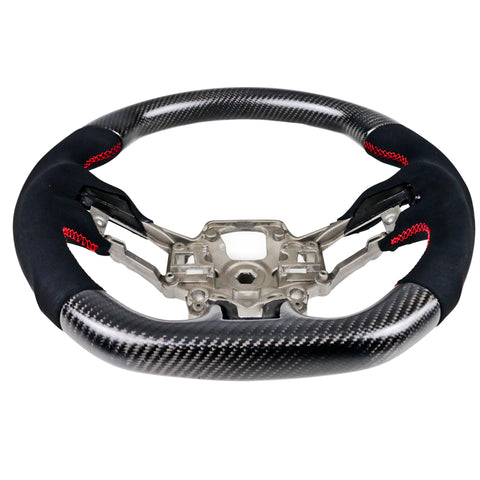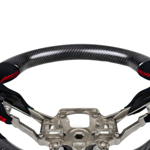 19-20 Ford Mustang V7 Steering Wheel Hiramitsu CF + Alcantara Red Stitching