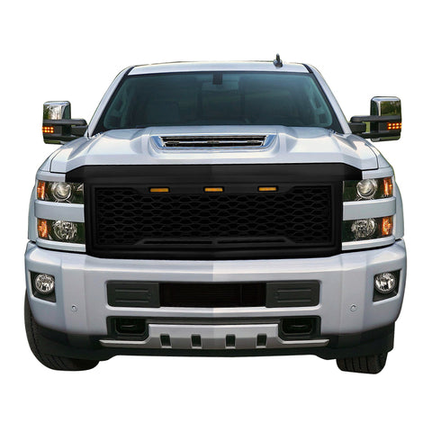 15-18 Chevy Silverado 2500 3500 Front Bumper Hood Mesh Grille - Gloss Black