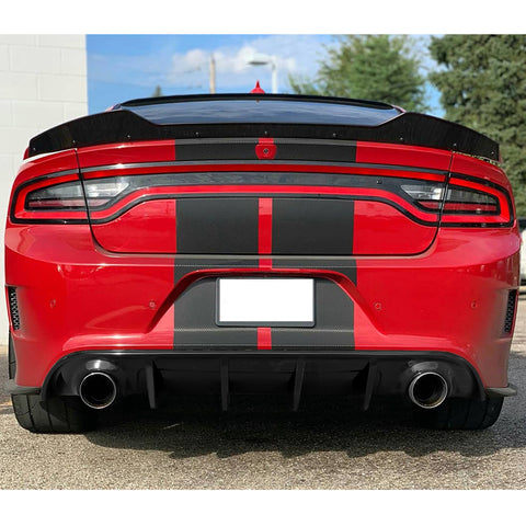 2015-2021 Dodge Charger SE & SXT Trims. Note: Aftermarket round tips must be installed in order for the diffuser to fit. *Application will not work with stock rectangular exhaust tips. |