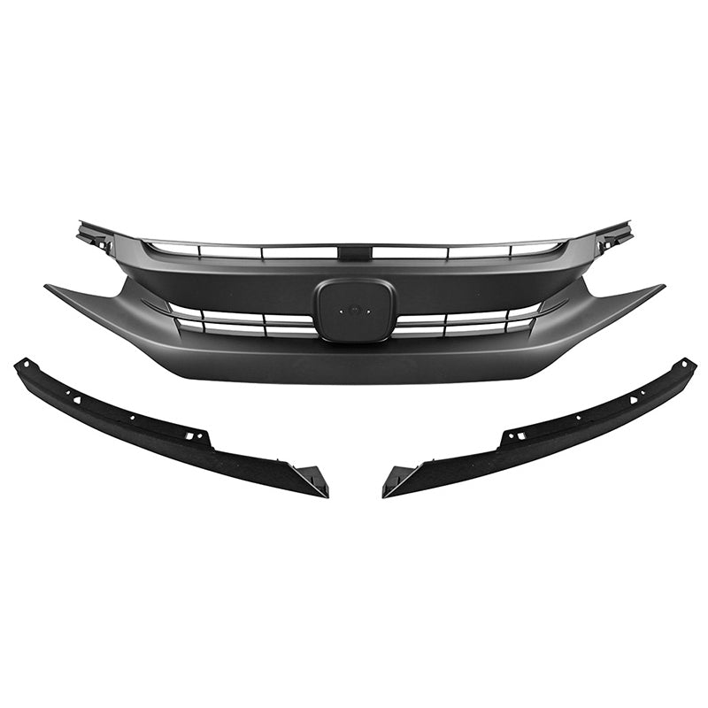 16-18 Honda Civic X OE Style Grille Hood + Eye Lid Eyebrows - Matte Black ABS