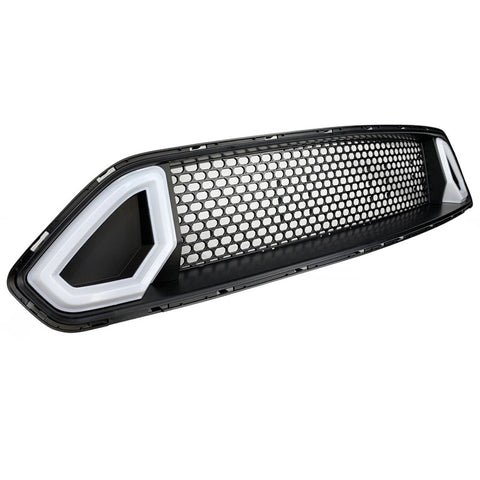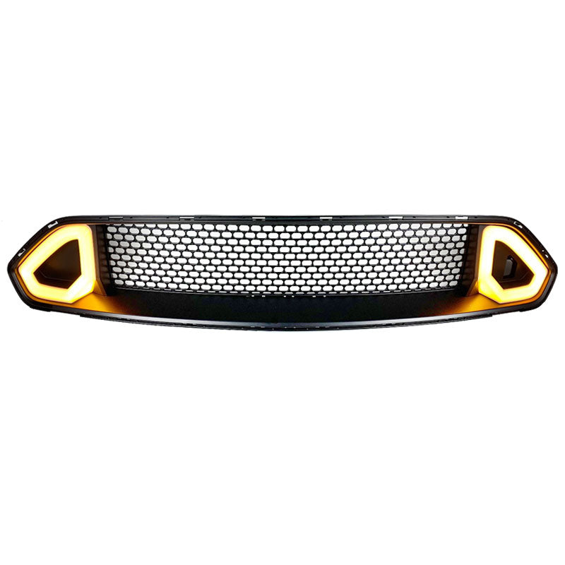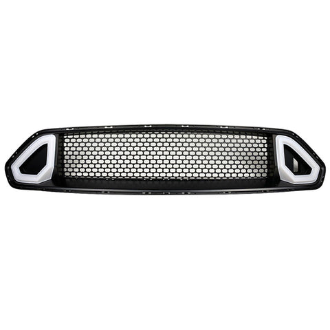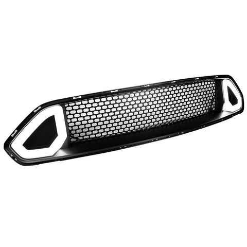 18-19 Ford Mustang R Spec Black Front Bumper Upper Grille Hood With DRL LED